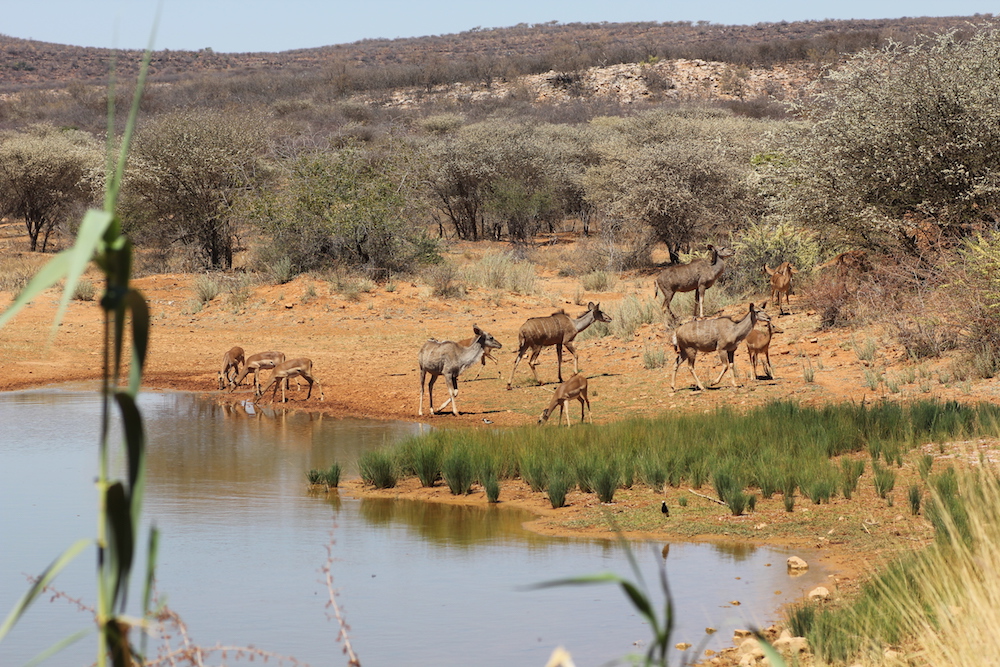 Anschließend ging es noch einmal auf Game Drive durch das farmeigene Land, dabei sahen wir jedoch „nur noch“ zwei Giraffen und zwei Elefanten, es war dennoch schön, zumal wir eine sehr nette Begleitung in Form von vier Crew-Mitgliedern einer Eurowings-Maschine hatten.