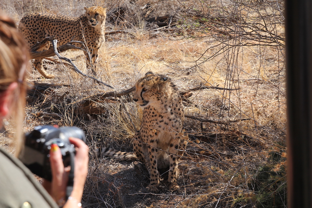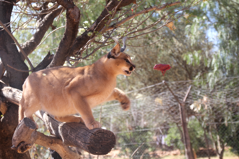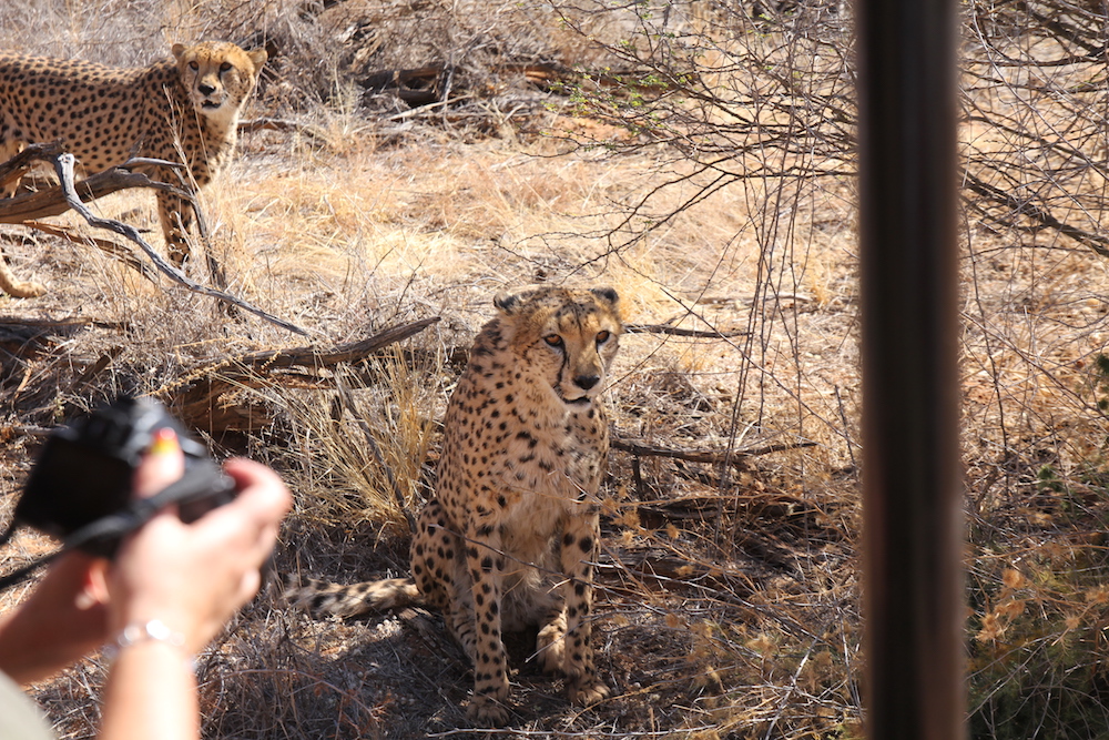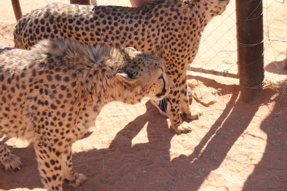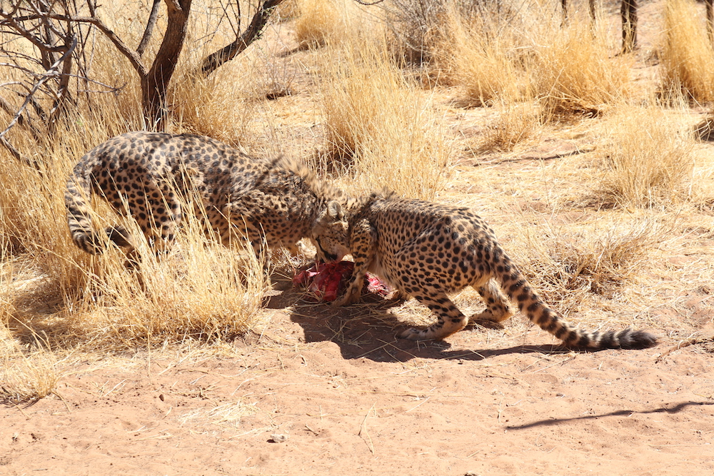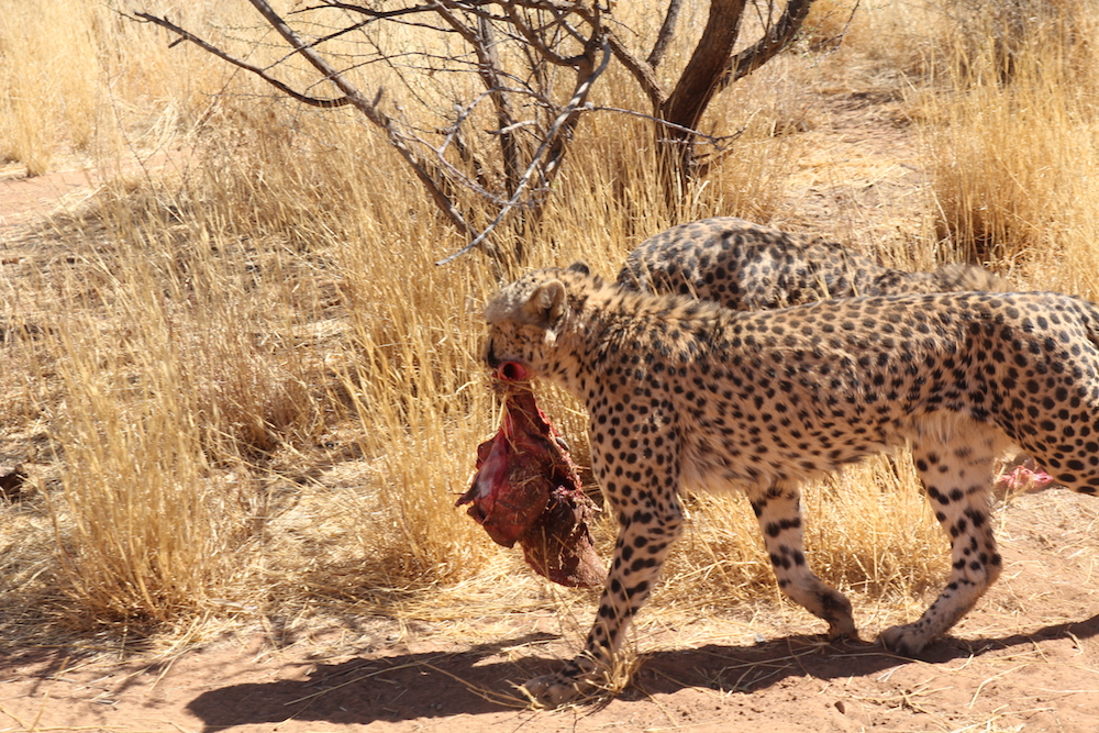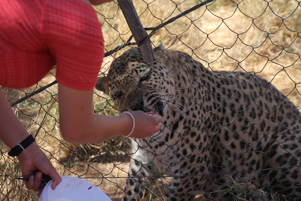 Gestern Nachmittag konnten wir aber noch die Fütterung der handzahmen Wüstenfuchse und Geparden miterleben, ebenso die Fütterung des halbzahmen Leoparden und der halbzahmen Geparden, unvergeßlich.