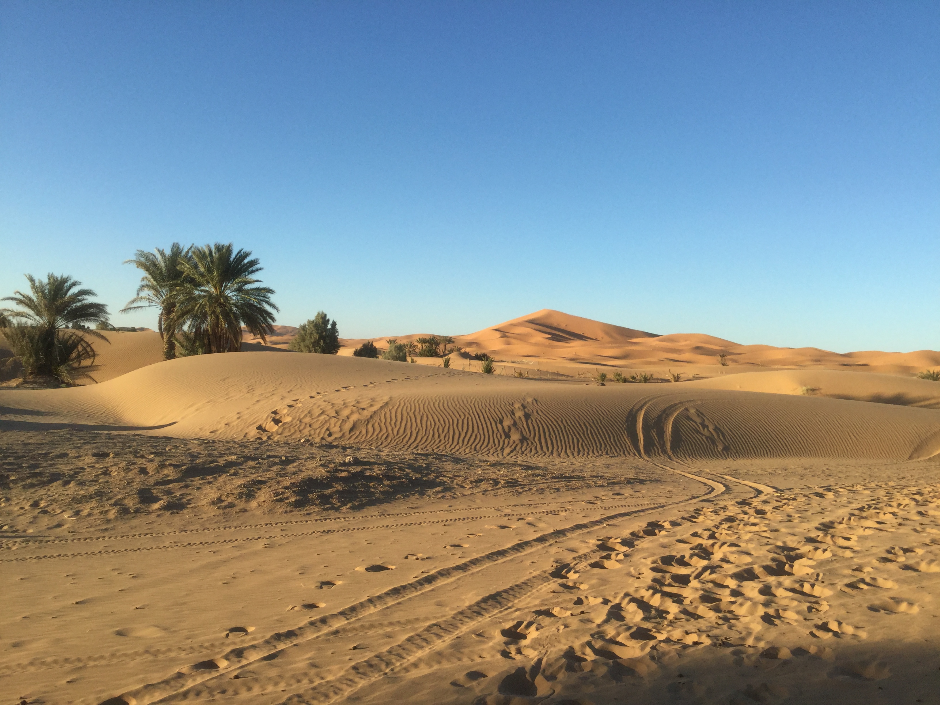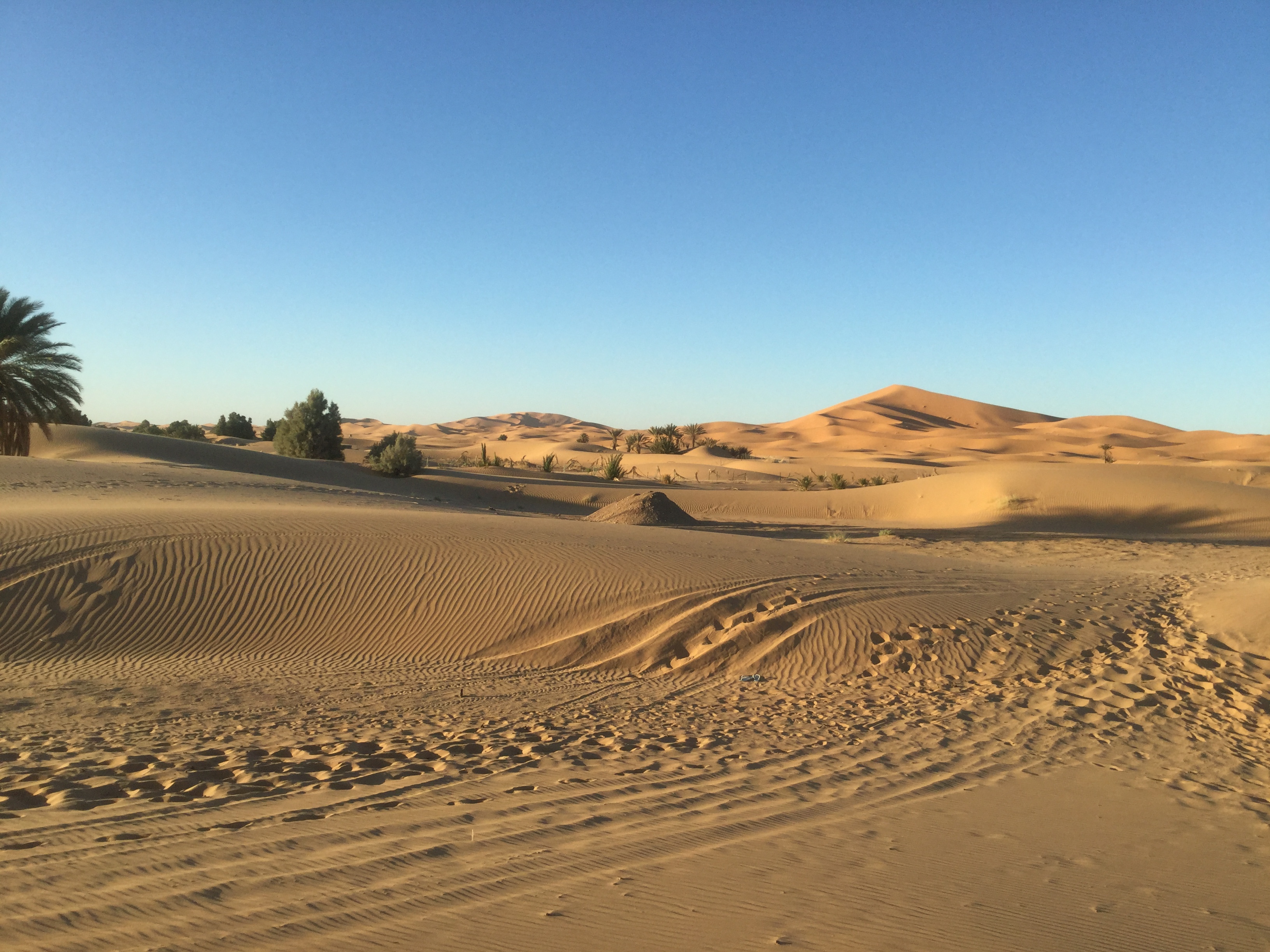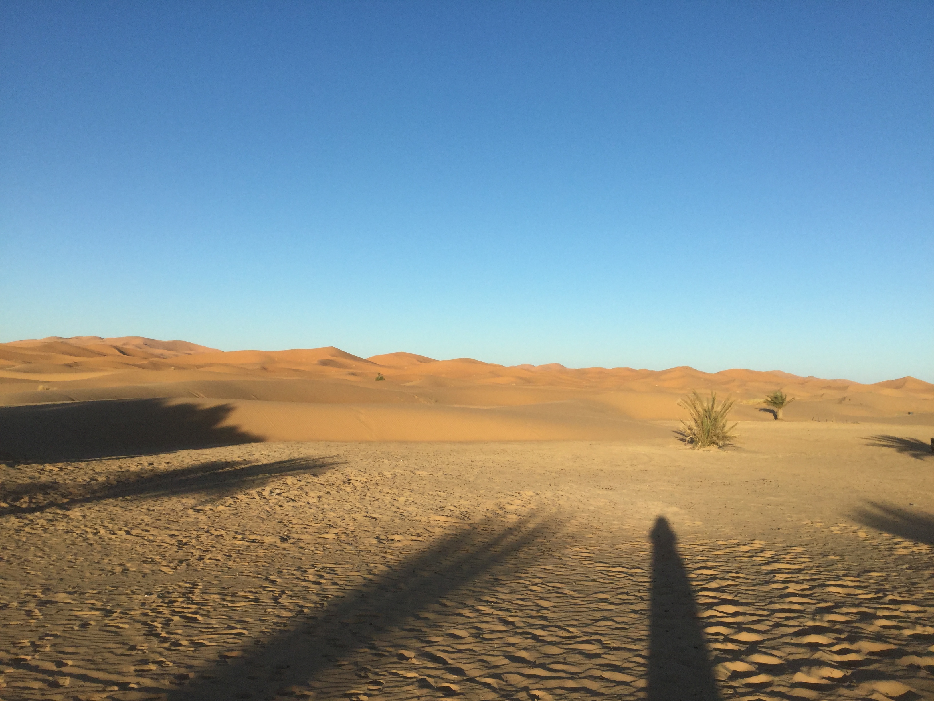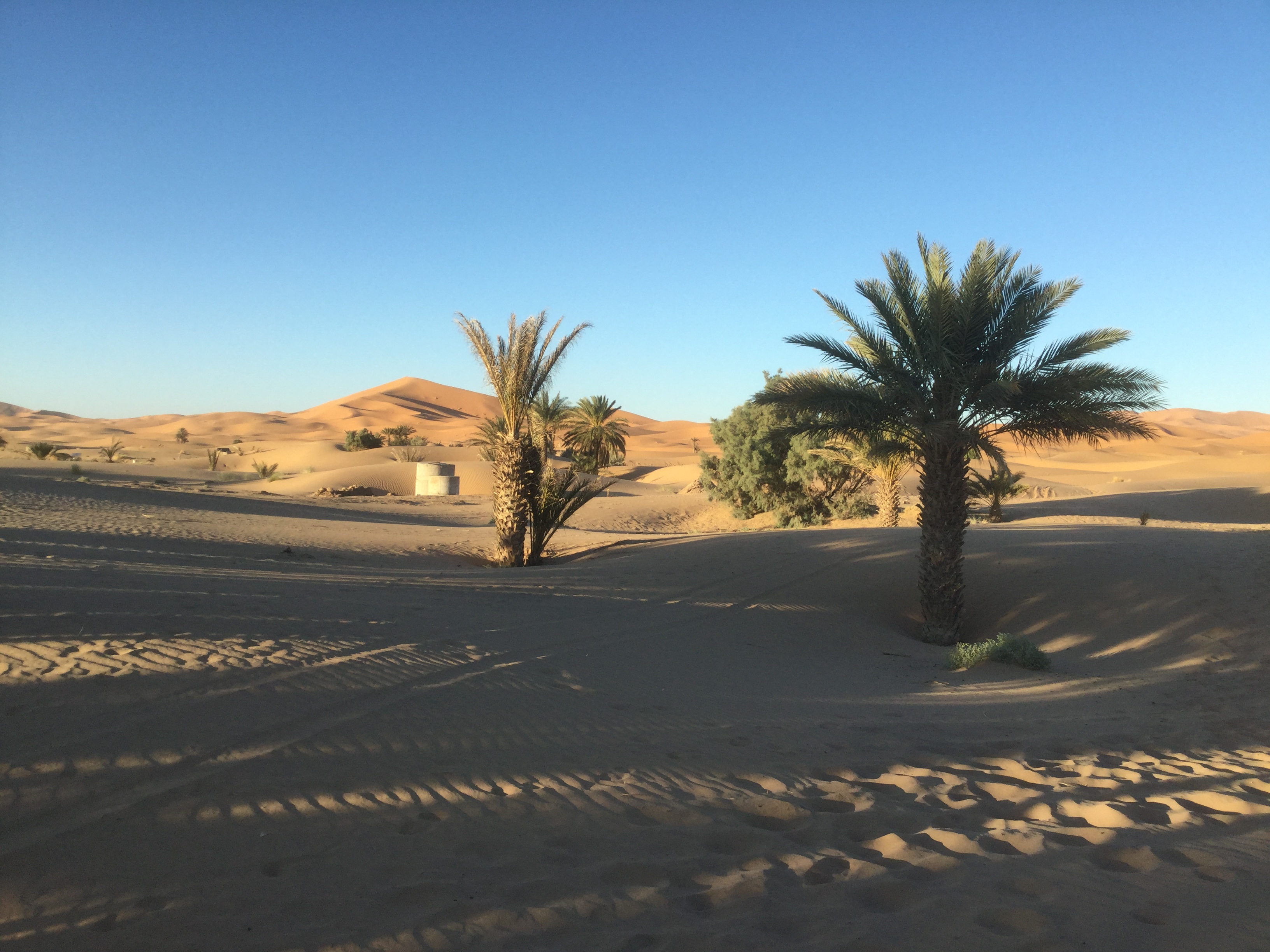 Der heutige Tag steht ganz im Zeichen der Entspannung, bevor es am späten Nachmittag mit den Kamelen zu unserem Wüstencamp geht. Der gestrige Abend war jedoch noch sehr unterhaltsam, denn als wir uns noch wunderten, warum im Restaurant für etwa 150 Plätze eingedeckt war, fielen auch schon die ersten aus einer Gruppe von rund 110 jungen Leuten, die, aus Südamerika kommend, zu Studienzwecken in Spanien und momentan auf einem Ausflug nach Marokko sind, im Restaurant ein. Ab da war dann an beschauliche Ruhe inmitten der Wüste nicht mehr zu denken, aber es war okay 😀.