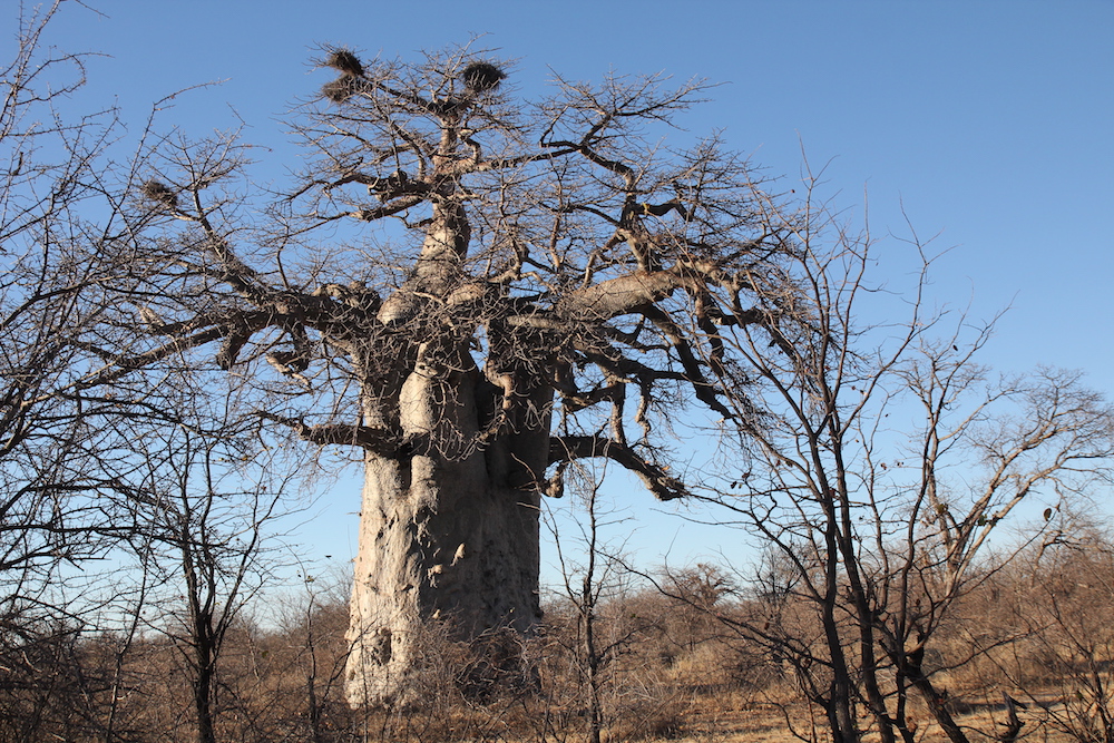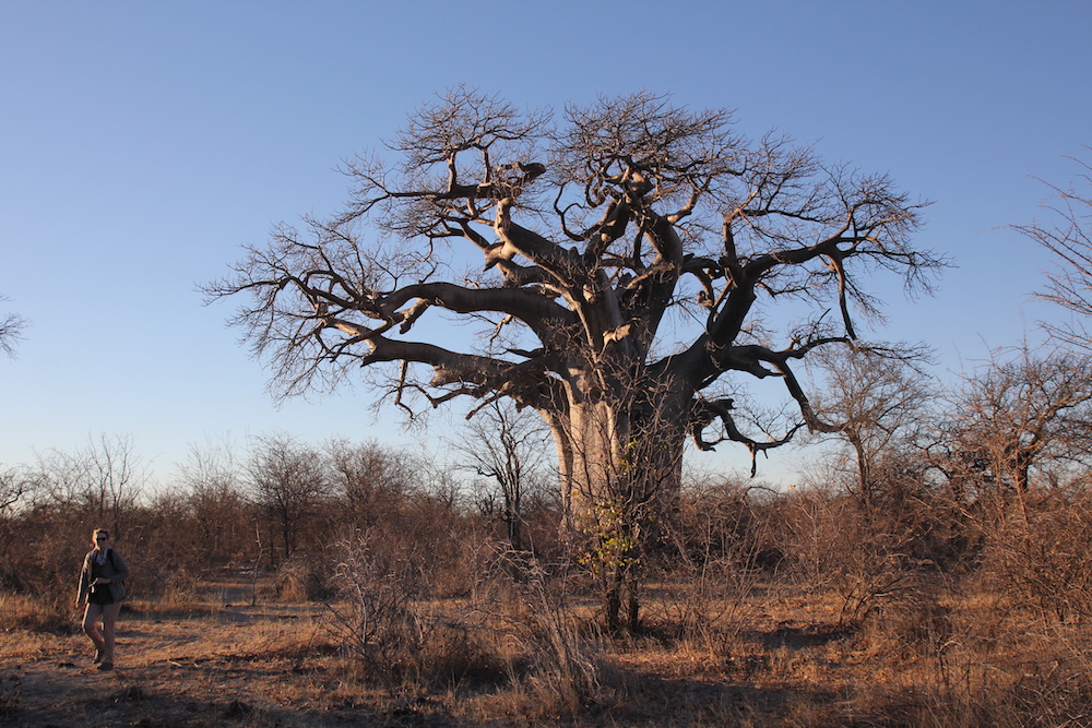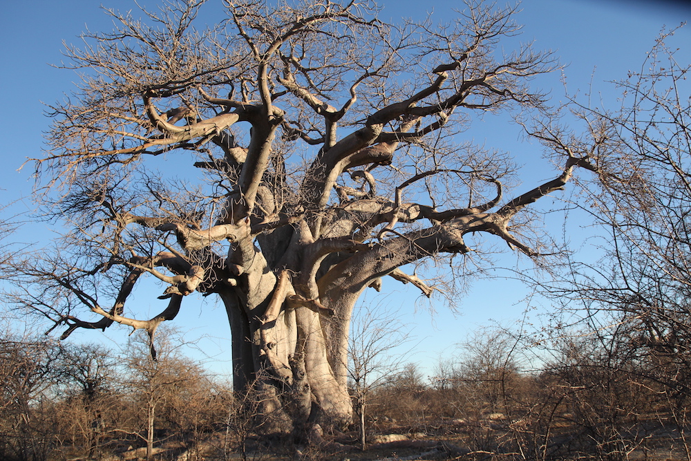 Mittlerweile sind wir in der Gweta Lodge nahe dem gleichnamigen kleinen Ort südlich des Okavangadeltas angekommen und haben die relativ frühe Ankunft genutzt, um noch einen Nachmittagsausflug zu den Baobas (bei uns: Affenbrotbäume) zu unternehmen. Affenbrotbäume haben für uns eine ganz besondere Bedeutung…,…da sie ja im „Der kleine Prinz“ vorkommen…