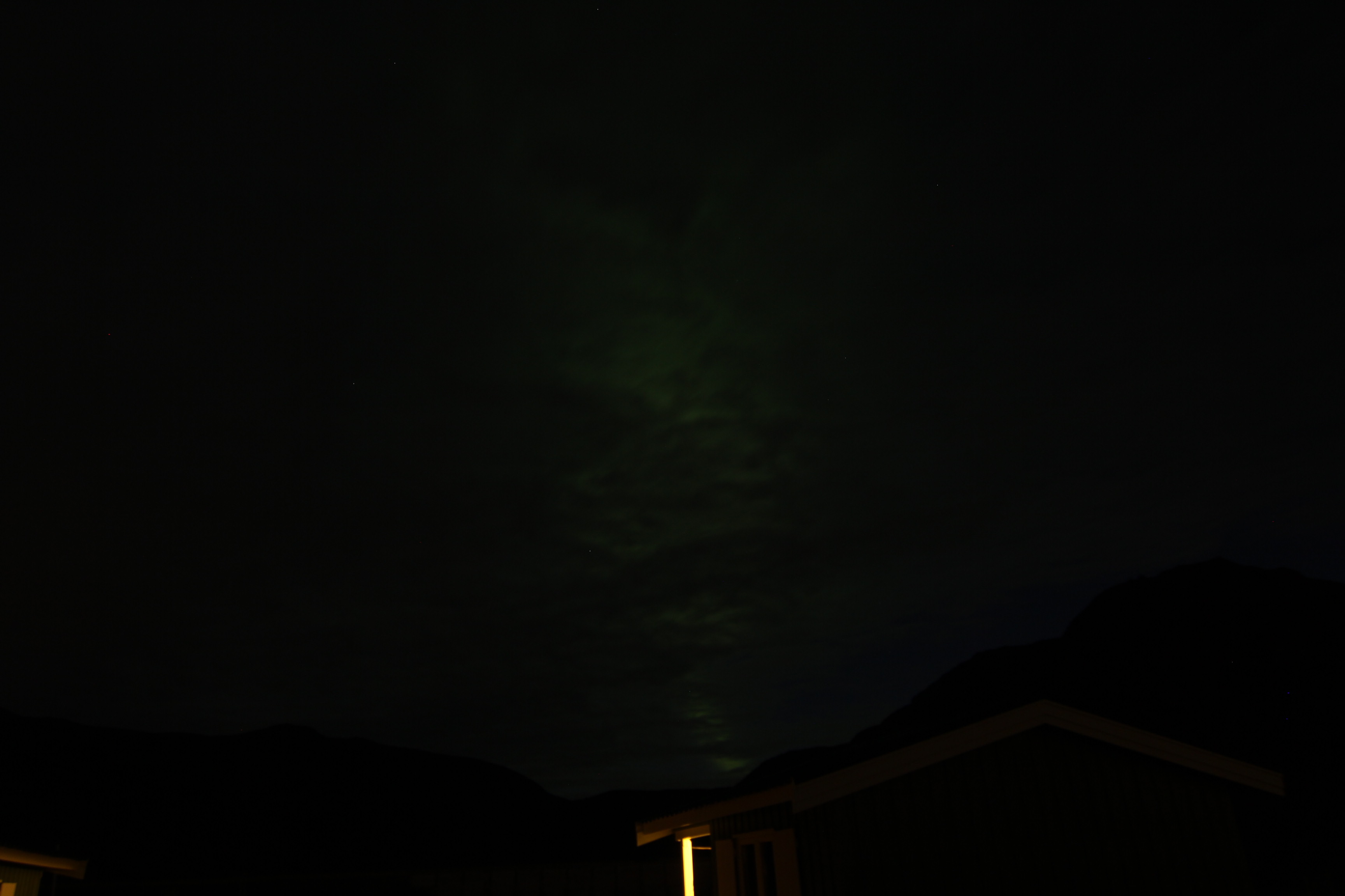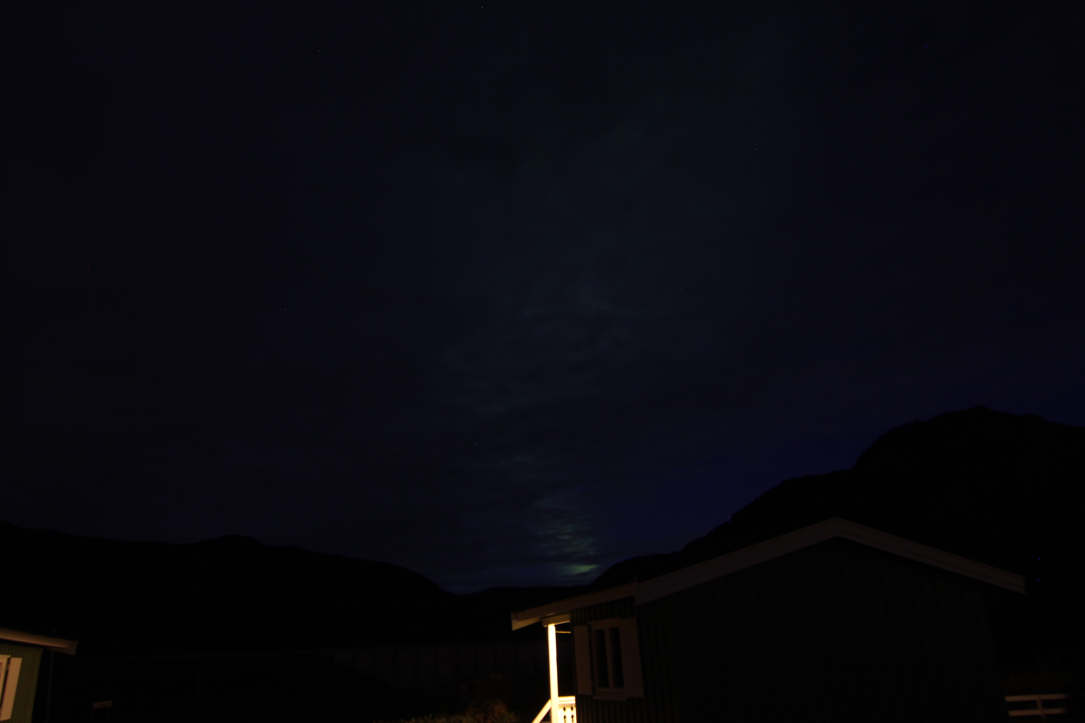 Ach ja, zu gestern Abend gibt es noch zu sagen, dass endlich wieder Nordlichter am Himmel zu sehen waren, wobei „sehen“ leider nur bedingt zutreffend ist, da sich pünktlich mit aufkommende Dunkelheit die Wolken am Himmel breit machten, sodass nur ein paar wenige, halbwegs und mit viel Wohlwollen brauchbare Bilder, die Nordlichter erahnen lassen, machbar waren.